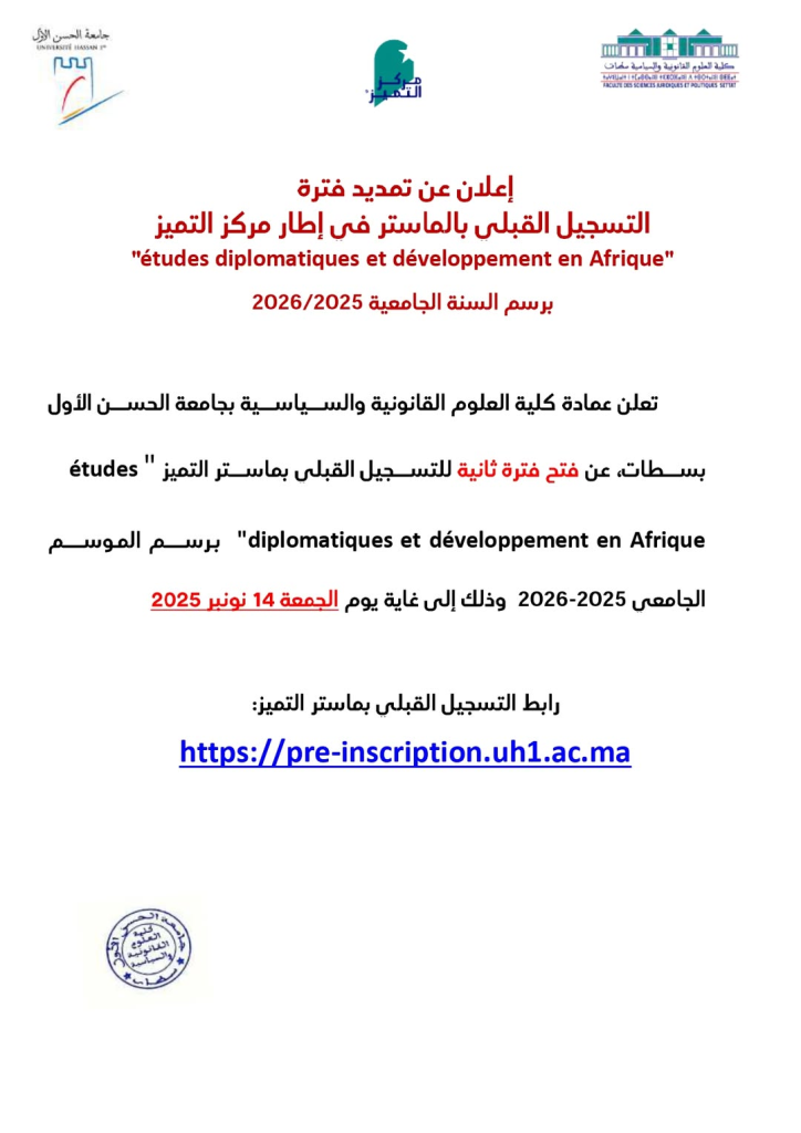 • Avis aux étudiants convoques pour passer l’examen d’accès au master d’excellence « études diplomatiques et développement en Afrique »
