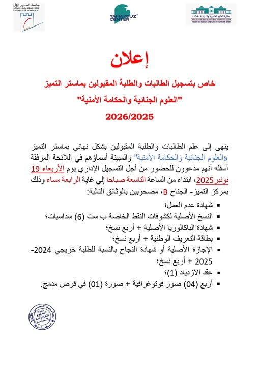لائحة الطلبة المقبولين بماستر التميز العلوم الجنائية والحكامة الأمنية